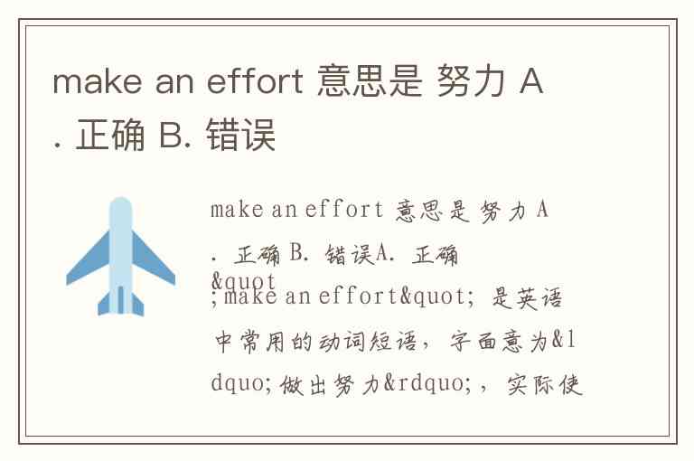 A. 正确"make an effort" 是英语中常用的动词短语,字面意为“做出努力”,实际使用中表示有意识地付出努力去做某事。例如:She always makes an effort to arrive on time(她总是努力准时到达),这里的含义与“努力”完全一致。