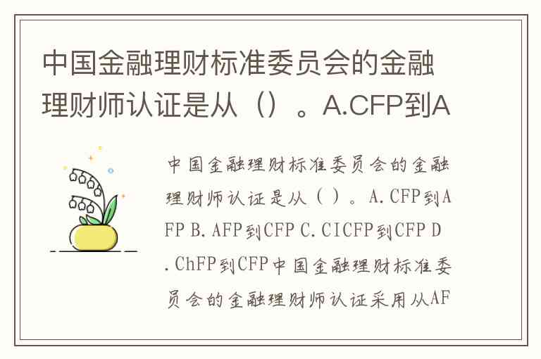 中国金融理财标准委员会的金融理财师认证是从()。A.CFP到AFP B.AFP到CFP C.CICFP到CFP D.ChFP到CFP