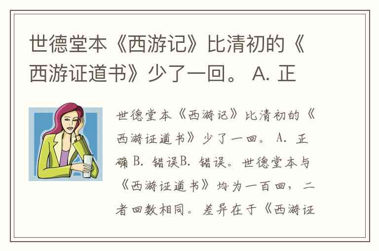 世德堂本《西游记》比清初的《西游证道书》少了一回。 A. 正确 B. 错误