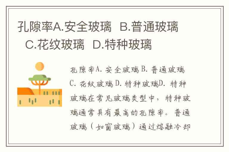 孔隙率A.安全玻璃 B.普通玻璃 C.花纹玻璃 D.特种玻璃
