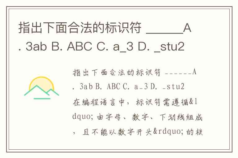 在编程语言中,标识符需遵循“由字母、数字、下划线组成,且不能以数字开头”的核心规则。基于此: