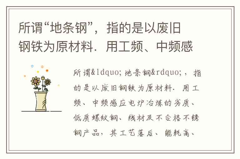 “地条钢”作为以废钢铁为原料、通过中频炉简单熔化生产的劣质钢材,因工艺落后、能耗高(每吨耗电700-800千瓦时)、质量不达标(抗拉强度不足、易脆断),长期扰乱钢铁市场秩序并威胁建筑安全。某省的排查治理行动,本质上是国家深化供给侧改革与规范市场秩序的缩影,正确选项应为 A.①②。