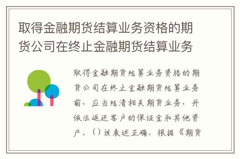 取得金融期货结算业务资格的期货公司在终止金融期货结算业务前,应当结清相关期货业务,并依法返还客户的保证金和其他资产。( )