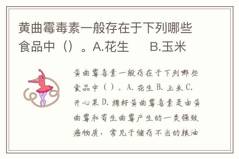 黄曲霉毒素一般存在于下列哪些食品中()。A.花生 B.玉米 C.开心果 D.棉籽