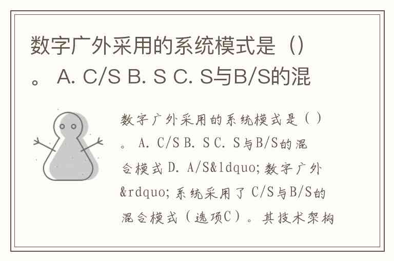 数字广外采用的系统模式是()。 A. C/S B. S C. S与B/S的混合模式 D. A/S