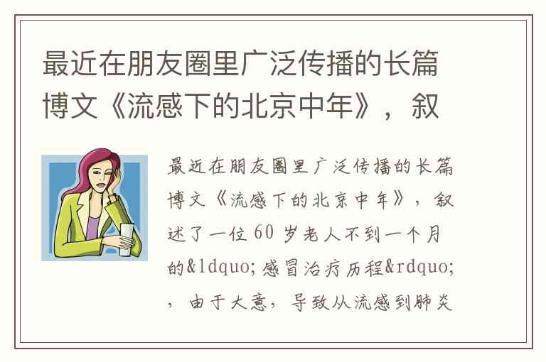 《流感下的北京中年》通过一个家庭的悲剧警示我们:对健康的疏忽可能导致无法挽回的后果。这篇博文揭示了普通流感因轻视和延误治疗,如何演变为重症肺炎并最终夺走生命的全过程,其教训直指个人健康责任与科学防护的重要性。
