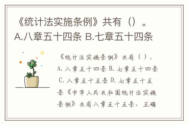 《统计法实施条例》共有()。A.八章五十四条 B.七章五十四条 C.八章五十五条 D.七章五十五条