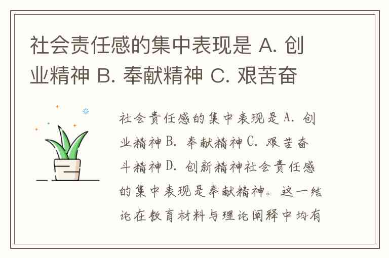社会责任感的集中表现是 A. 创业精神 B. 奉献精神 C. 艰苦奋斗精神 D. 创新精神