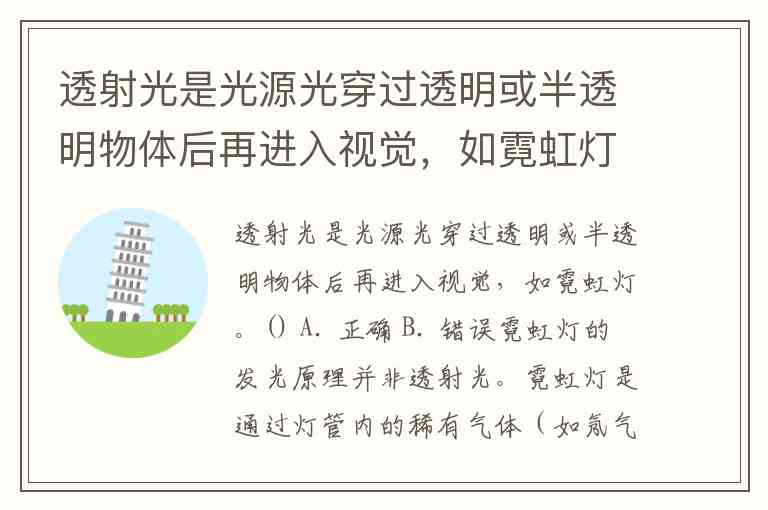 透射光是光源光穿过透明或半透明物体后再进入视觉,如霓虹灯。() A. 正确 B. 错误
