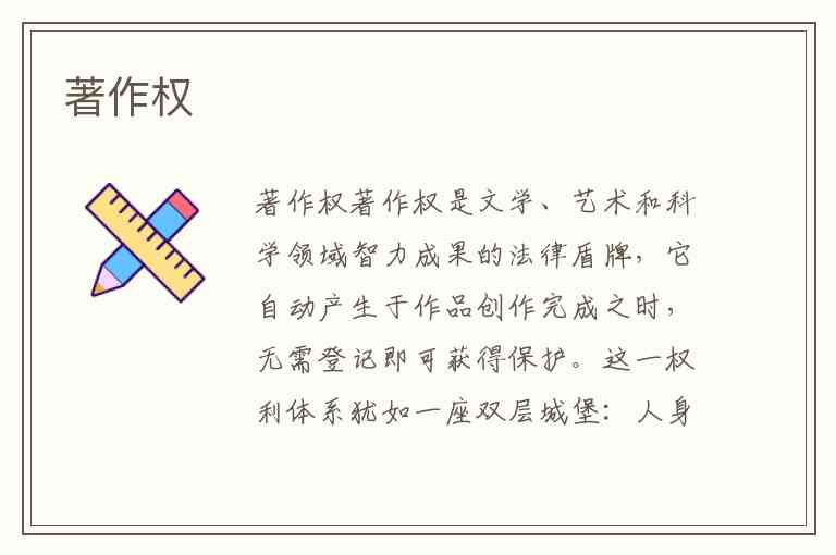 著作权是文学、艺术和科学领域智力成果的法律盾牌,它自动产生于作品创作完成之时,无需登记即可获得保护。这一权利体系犹如一座双层城堡:人身权是永不褪色的基石,包括署名权、修改权和保护作品完整权,这些权利伴随作者终生且死后不受时间限制;财产权则像有期限的封地,涵盖复制、发行、信息网络传播等13项具体权能,通常保护至作者死亡后第50年的12月31日。