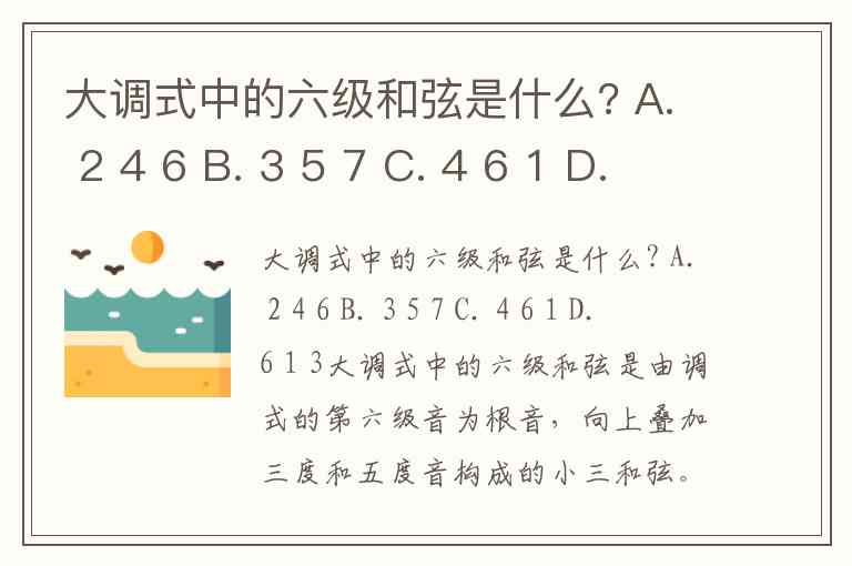 大调式中的六级和弦是什么? A. 2 4 6 B. 3 5 7 C. 4 6 1 D. 6 1 3