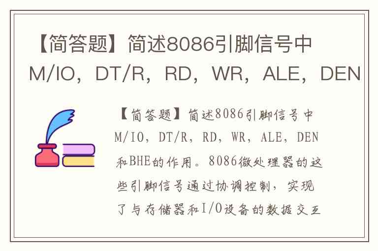 【简答题】简述8086引脚信号中M/IO,DT/R,RD,WR,ALE,DEN和BHE的作用。