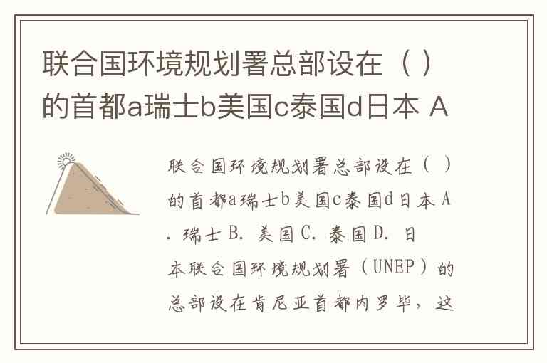 联合国环境规划署总部设在( )的首都a瑞士b美国c泰国d日本 A. 瑞士 B. 美国 C. 泰国 D. 日本