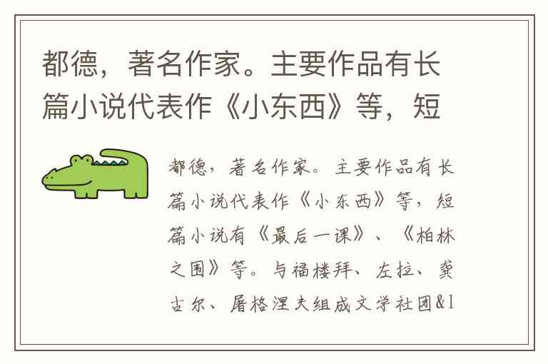 都德,著名作家。主要作品有长篇小说代表作《小东西》等,短篇小说有《最后一课》、《柏林之围》等。与福楼拜、左拉、龚古尔、屠格涅夫组成文学社团“五人聚餐会”。() A. 正确 B. 错误