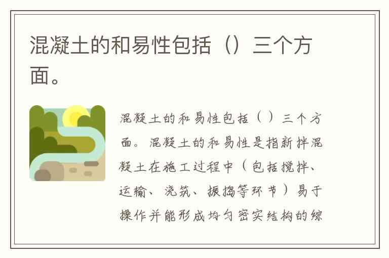 混凝土的和易性是指新拌混凝土在施工过程中(包括搅拌、运输、浇筑、振捣等环节)易于操作并能形成均匀密实结构的综合性能,其核心由流动性、粘聚性和保水性三个相互关联又相互制约的方面组成。