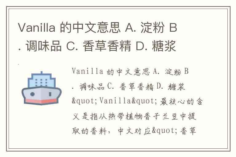Vanilla 的中文意思 A. 淀粉 B. 调味品 C. 香草香精 D. 糖浆