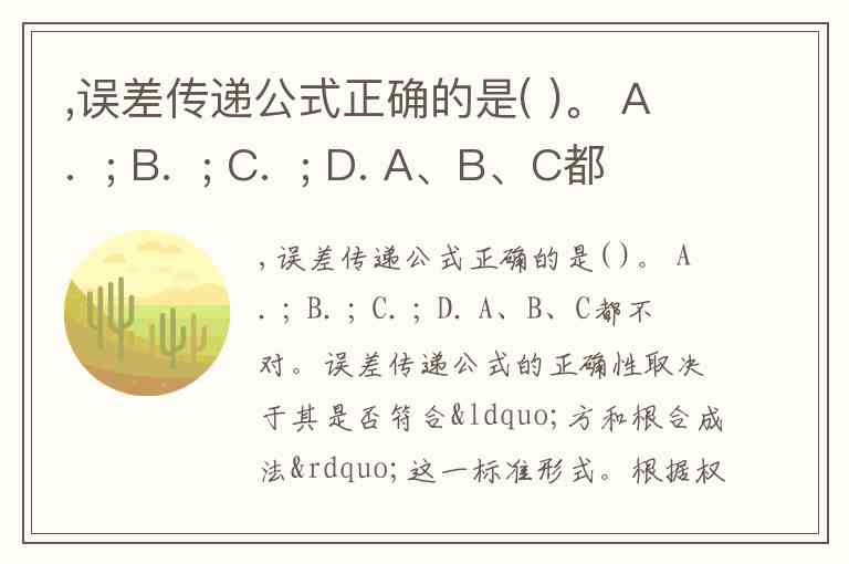 结论:若选项A、B、C均未包含平方根和平方项的组合形式,则正确答案为 D. A、B、C都不对。误差传递的核心是考虑随机误差的统计特性,需通过平方和开方实现独立误差的合理合成,而非简单代数相加。