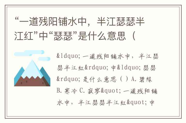 “一道残阳铺水中,半江瑟瑟半江红”中“瑟瑟”是什么意思()A.碧绿 B.寒冷 C.寂寥