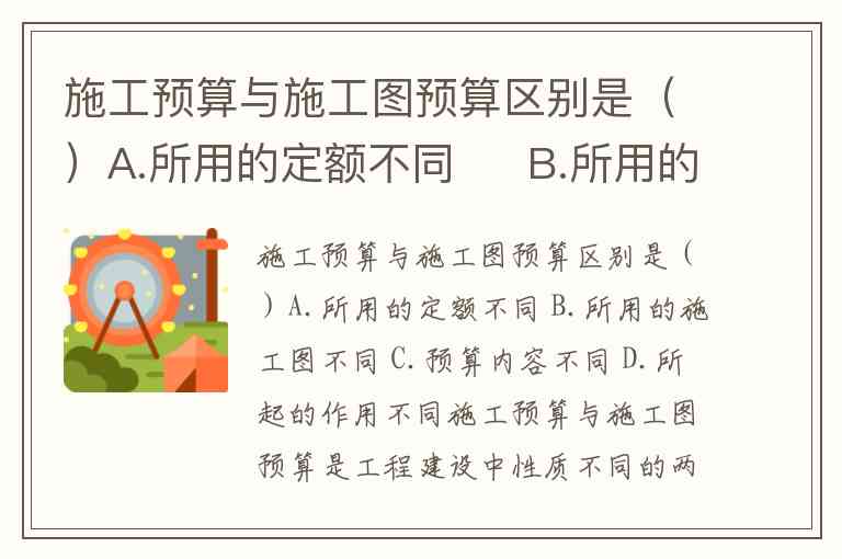 施工预算与施工图预算是工程建设中性质不同的两类预算文件,主要区别体现在所用定额、预算内容和作用三个核心维度。从文档信息看,题目可能存在表述误差("施工预算与施工预算"),结合行业常规术语,应为施工预算与施工图预算的区别,正确答案为 A.所用的定额不同、C.预算内容不同、D.所起的作用不同。