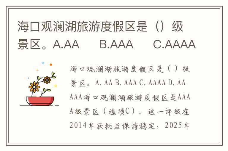 海口观澜湖旅游度假区是()级景区。A.AA B.AAA C.AAAA D.AAAAA