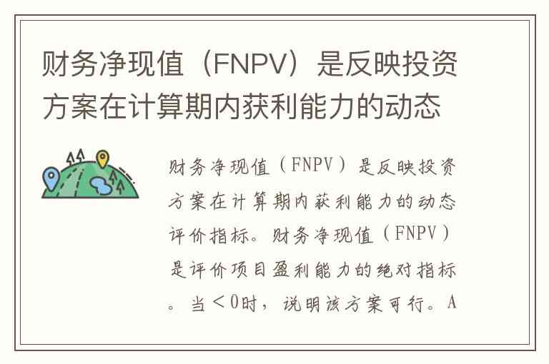 您的问题中存在一处关键错误:财务净现值(FNPV)当<0时,方案不可行,而非可行。根据文档,FNPV的判别准则明确:当FNPV>0或=0时方案可行,<0时不可行,这是动态评价项目盈利能力的核心标准。