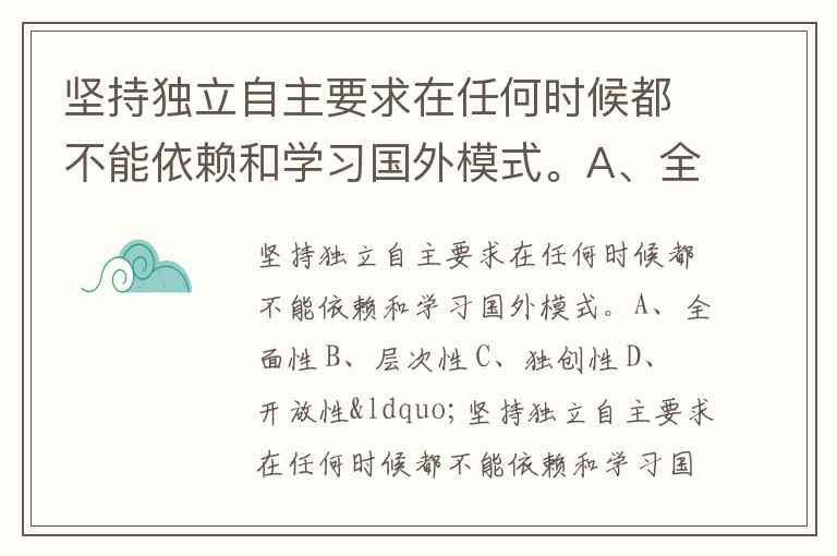 坚持独立自主要求在任何时候都不能依赖和学习国外模式。A、全面性 B、层次性 C、独创性 D、开放性