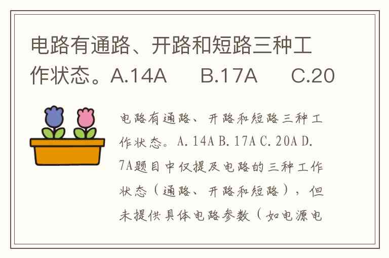 电路有通路、开路和短路三种工作状态。A.14A B.17A C.20A D.7A