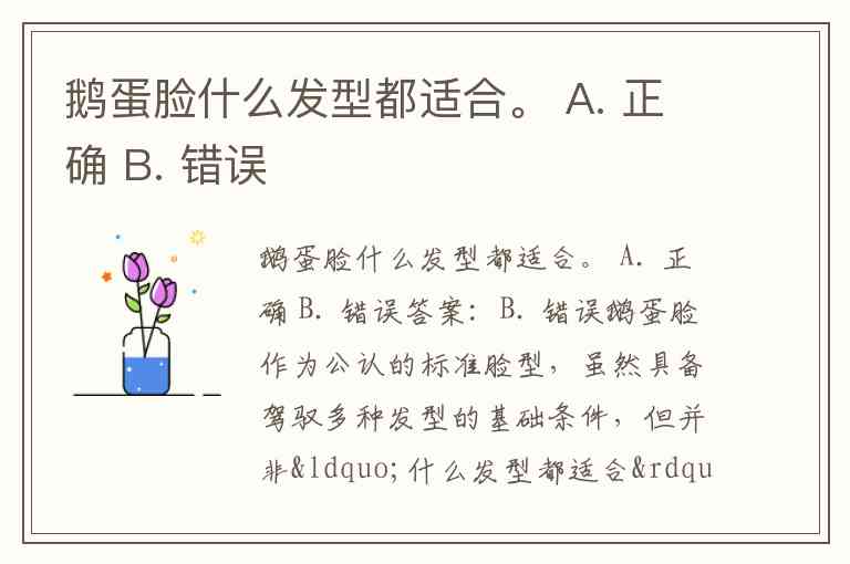 鹅蛋脸什么发型都适合。 A. 正确 B. 错误