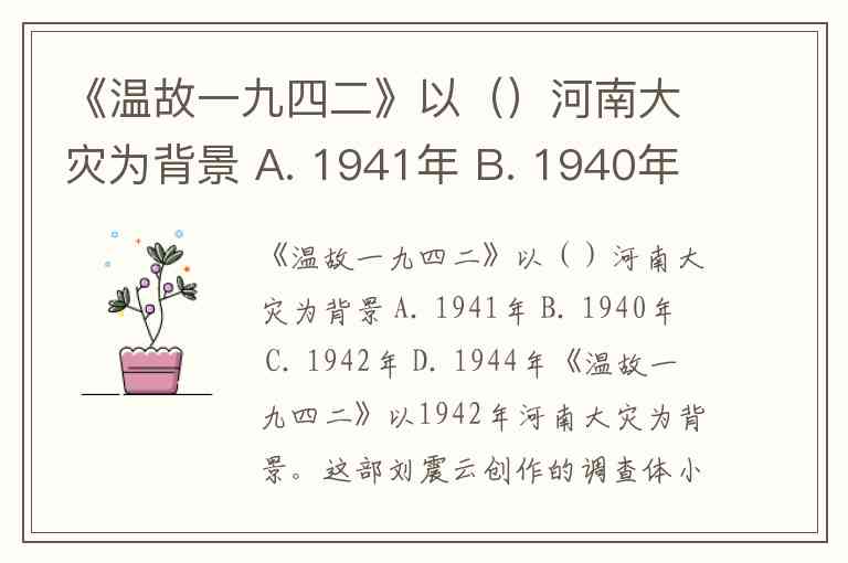 《温故一九四二》以()河南大灾为背景 A. 1941年 B. 1940年 C. 1942年 D. 1944年