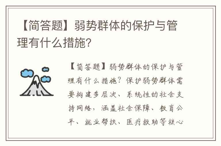 保护弱势群体需要构建多层次、系统性的社会支持网络,涵盖社会保障、教育公平、就业帮扶、医疗救助等核心领域,同时强化法律保障与社会参与。以下是具体措施: