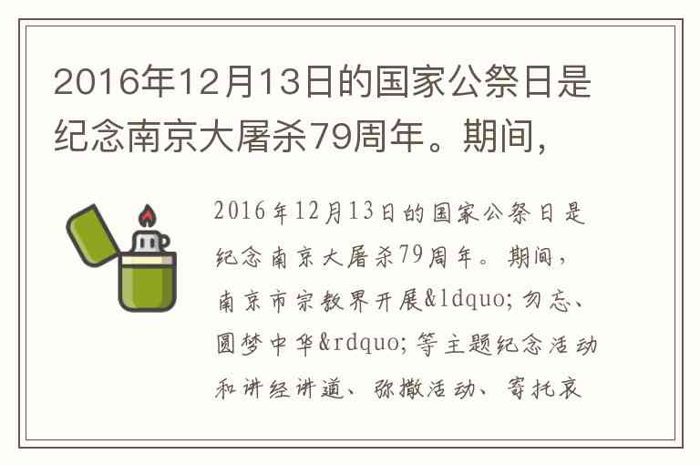 南京市宗教界在国家公祭日期间开展“勿忘、圆梦中华”等主题纪念活动,体现了宗教活动与国家民族利益的结合。这反映出我国宗教团体主动将自身活动与社会发展、民族利益相联系,在纪念历史、祈祷和平中发挥积极作用。