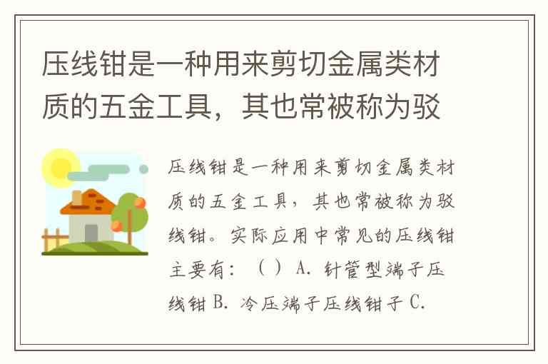 压线钳是一种用来剪切金属类材质的五金工具,其也常被称为驳线钳。实际应用中常见的压线钳主要有:() A. 针管型端子压线钳 B. 冷压端子压线钳子 C. 网线钳 D. 斜口钳