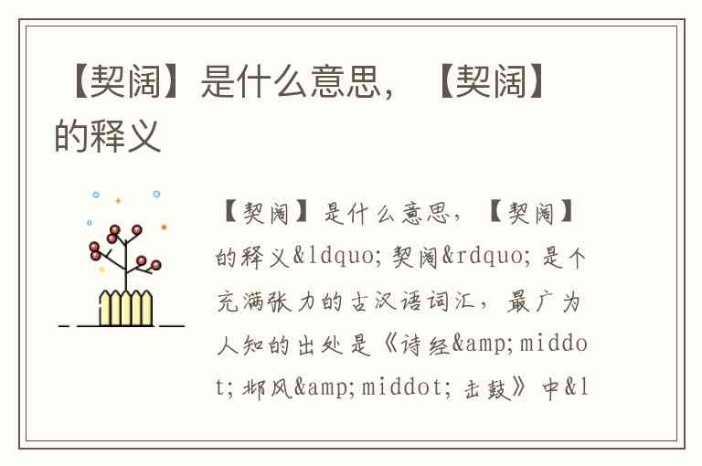 “契阔”是个充满张力的古汉语词汇,最广为人知的出处是《诗经·邶风·击鼓》中“死生契阔,与子成说”这句千古名句。它在不同语境下展现出丰富的含义,核心可归纳为三大类: