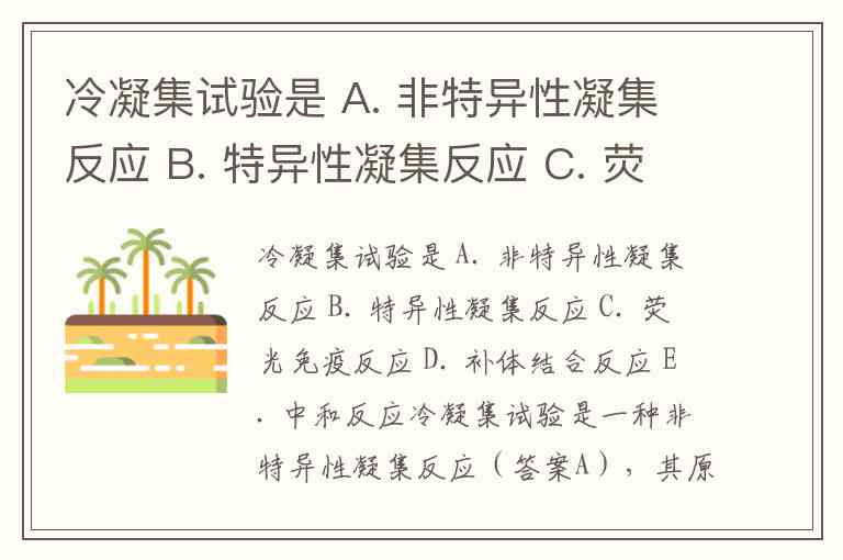 冷凝集试验是 A. 非特异性凝集反应 B. 特异性凝集反应 C. 荧光免疫反应 D. 补体结合反应 E. 中和反应