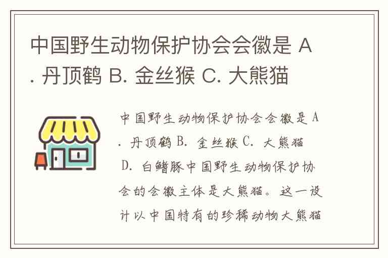 中国野生动物保护协会会徽是 A. 丹顶鹤 B. 金丝猴 C. 大熊猫 D. 白鳍豚