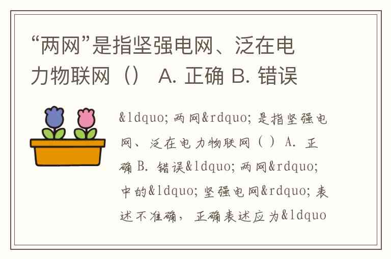 “两网”是指坚强电网、泛在电力物联网() A. 正确 B. 错误