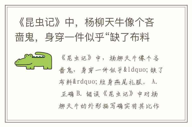 《昆虫记》中,杨柳天牛像个吝啬鬼,身穿一件似乎“缺了布料”短身燕尾礼服。 A. 正确 B. 错误