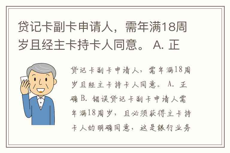 贷记卡副卡申请人,需年满18周岁且经主卡持卡人同意。 A. 正确 B. 错误