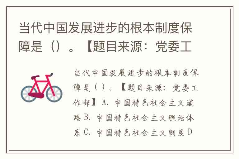 当代中国发展进步的根本制度保障是()。【题目来源:党委工作部】 A. 中国特色社会主义道路 B. 中国特色社会主义理论体系 C. 中国特色社会主义制度 D. 中国特色社会主义文化
