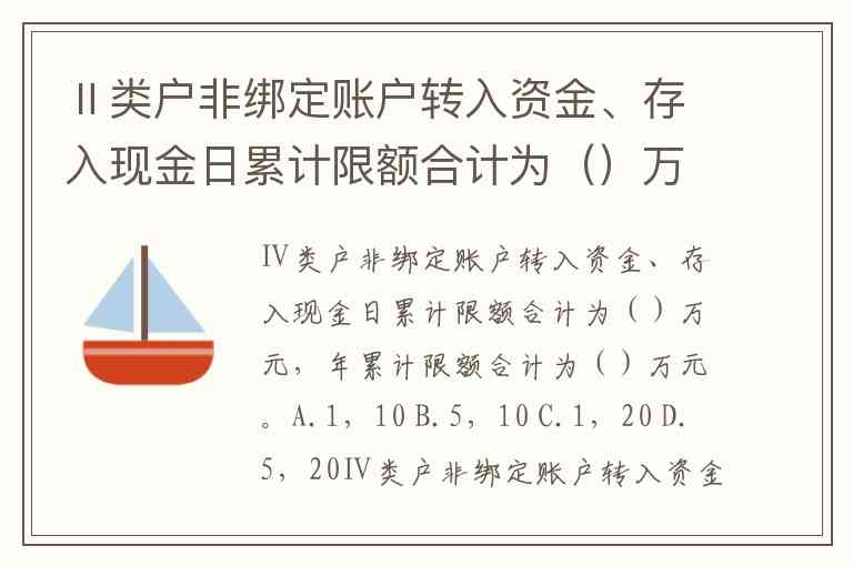 Ⅱ类户非绑定账户转入资金、存入现金日累计限额合计为()万元,年累计限额合计为()万元。A.1,10 B.5,10 C.1,20 D.5,20