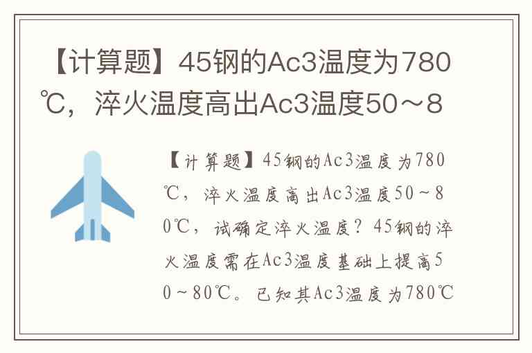 【计算题】45钢的Ac3温度为780℃,淬火温度高出Ac3温度50~80℃,试确定淬火温度?