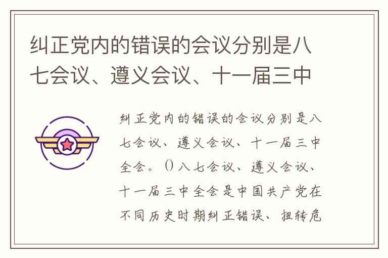 纠正党内的错误的会议分别是八七会议、遵义会议、十一届三中全会。()