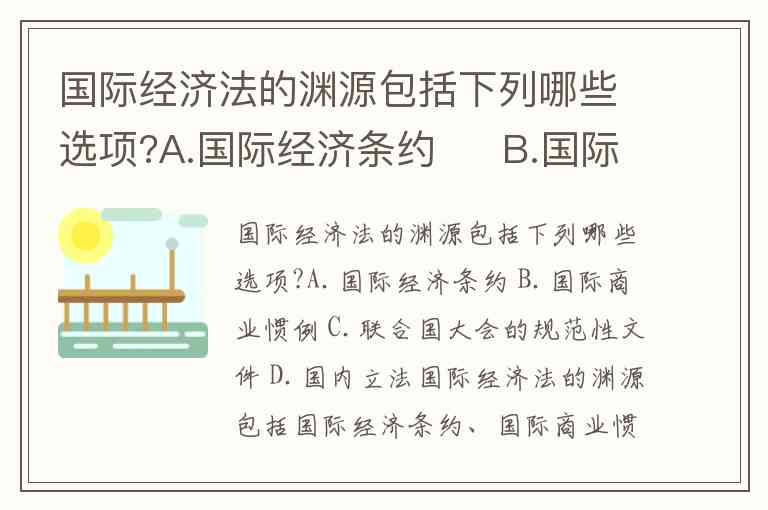 国际经济法的渊源包括下列哪些选项?A.国际经济条约 B.国际商业惯例 C.联合国大会的规范性文件 D.国内立法