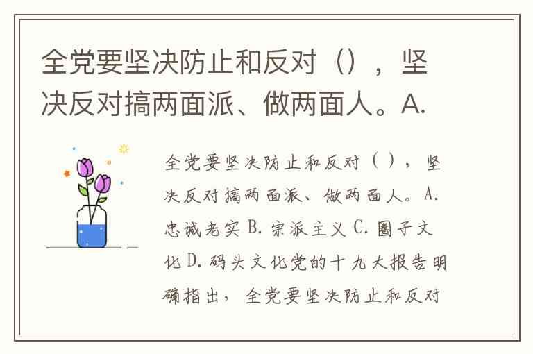 全党要坚决防止和反对(),坚决反对搞两面派、做两面人。A.忠诚老实 B.宗派主义 C.圈子文化 D.码头文化