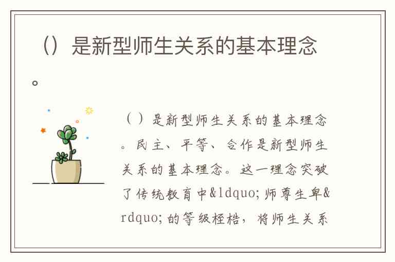 ()是新型师生关系的基本理念。