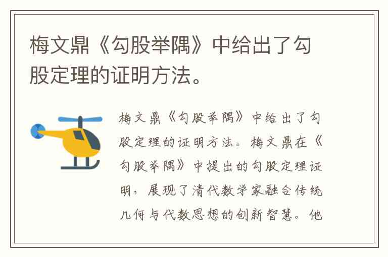 梅文鼎《勾股举隅》中给出了勾股定理的证明方法。