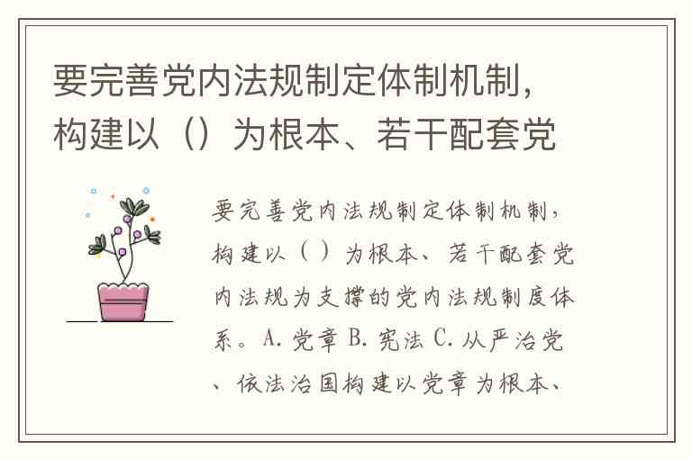 要完善党内法规制定体制机制,构建以()为根本、若干配套党内法规为支撑的党内法规制度体系。A.党章 B.宪法 C.从严治党、依法治国