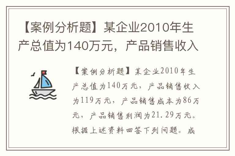【案例分析题】某企业2010年生产总值为140万元,产品销售收入为119万元,产品销售成本为86万元,产品销售利润为21.29万元。根据上述资料回答下列问题。成本利润率为()。A.21.56% B.24.76% C.25.34% D.27.37%