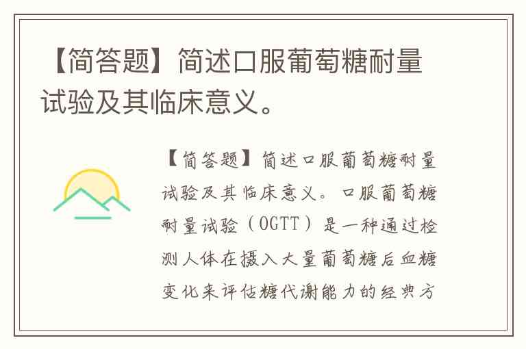 【简答题】简述口服葡萄糖耐量试验及其临床意义。