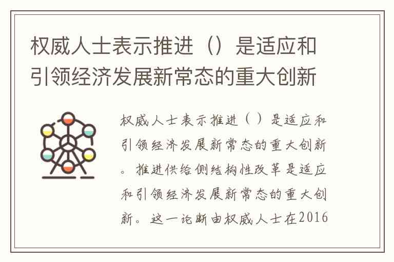 推进供给侧结构性改革是适应和引领经济发展新常态的重大创新。这一论断由权威人士在2016年接受人民日报采访时明确提出,旨在破解我国经济发展中存在的结构性矛盾,推动发展方式从规模速度型向质量效率型转变。